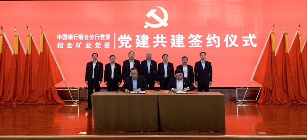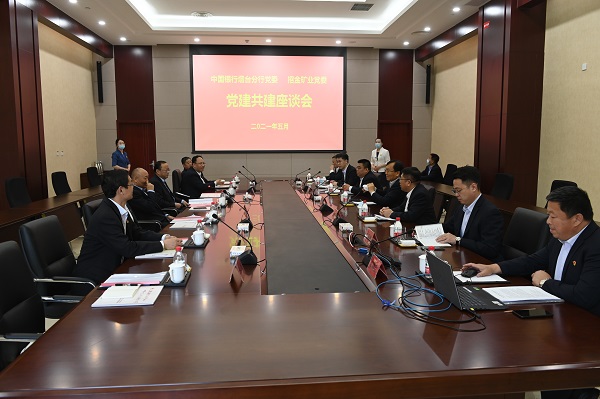 5月25日下午,招金礦業黨委與中國銀行煙臺分行黨委召開黨建共建座談會并簽訂黨建共建協議,掀開了雙方以黨建引領,推動銀企深度融合的新模式。這是今年以來,招金礦業黨委結合黨史學習教育活動,創新黨建載體,豐富黨建活動內容的新舉措。活動當天,招金礦業黨委書記、董事長翁占斌,黨委副書記、副總裁王立剛,中國銀行煙臺分行黨委書記、行長付廷泉,黨委委員、副行長李愛東,中國銀行煙臺分行招遠支行黨支部書記、行長王濤,副行長劉慶博等相關人員出席活動。
