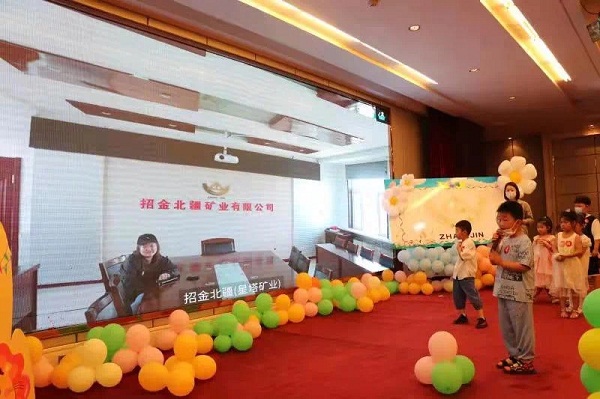 活動開始后,孩子們在家長的帶領下,來到由招金標識形狀形成的心愿墻前,將提前準備好,自己親手寫下的最想對父母說的話貼在心愿墻上,表達對父母的感恩和思念之情;在舞臺中央,工作人員已提前將視頻連線投放至大屏幕上,孩子們可以通過大屏幕與千里之外的父母視頻通話,他們有的與父母說著心里話,有的向父母展示著自己的朗誦、舞蹈、唱歌、繪畫等諸多才藝,用自己的方式向埠外的父母展示著自己的成長和進步,其中一位孩子與埠外的父親連線時說到:“爸爸,我已經是一個小男子漢了,已經學會照顧自己和幫媽媽做家務,爸爸在外地安心工作,家中有我,請您放心”。待孩子們盡興玩耍后,孩子們來到禮品臺,接過由公司工會按照各年齡段兒童需要及喜好,分別為他們精心挑選的文具套裝、馬克筆、水壺、泡泡機等禮品組成的“大禮包”。“大禮包”內既有學習用品,又有兒童玩具,禮物雖然普通,但卻十分暖心,大家都知道,這其實也是一份不平常的禮物,因為它承載著一份濃濃的愛。孩子們在收到節日禮物后,個個展露出開心的笑臉,屏幕內外的家長和工作人員也感受到了孩子的幸福和快樂,彌補了埠外職工在兒童節不能陪伴自己孩子的遺憾。