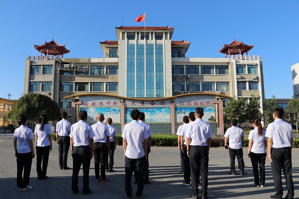 在偉大祖國73歲生日之際,豐寧金龍踐行企業文化,弘揚企業精神,舉行了升國旗活動和員工祝?;顒印?/span>伴隨著嘹亮的口號聲,護旗隊伍擎著鮮艷的國旗,踏著鏗鏘有力的步伐,精神抖擻地走向升旗臺。在莊嚴雄壯的國歌聲中,鮮艷的五星紅旗冉冉升起,全體職工向國旗行注目禮,表達最崇高的敬意和對祖國美好的祝愿。