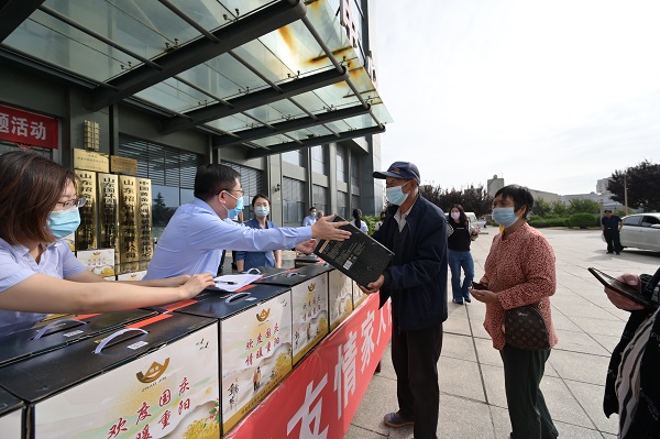 在招金科技辦公樓前,工作人員早早開始忙碌,懸掛條幅,擺放慰問品,布置現場,精心準備。埠外企業員工父母陸續到達活動現場,在工作人員的引導下,秩序井然的領取節日禮品,每一位到場的招金員工父母臉上都洋溢著自豪和微笑。