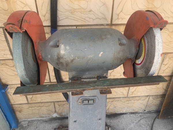 砂輪機(jī)磨刀托架得巧用。在機(jī)修車間,車刀在磨削的過程中,因砂輪摩擦力和慣性,易使車刀向砂輪旋轉(zhuǎn)方向下滑,一旦握持不住刀具,易發(fā)生傷害肢體的事件。針對這一情況,機(jī)動設(shè)備部對砂輪機(jī)進(jìn)行了改造,取長度合適的三角鐵及鐵板制作托架,固定于砂輪機(jī)砂輪前端,能夠有效避免在磨削過程中因砂輪摩擦力及握持力度過大造成的傷害事件,提高作用過程中的安全性。