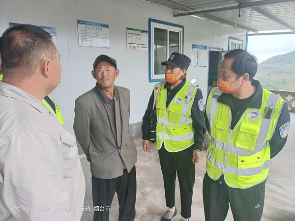 當時老人精神疲憊,只推著一輛獨輪小推車,車上混亂地放著雜草和幾顆大蔥。王志彬與老人溝通時,發(fā)現(xiàn)其語言表達不清,家庭住址、姓名等一無所知、思路混亂,身上也沒有能證明身份的證件,一時無法確認老人的身份信息。考慮到近日氣溫較低,老人可能很久沒有進食,王志彬、孫希臣立刻將老人帶到尾礦庫值班室,給老人遞上熱水和食物,照顧老人進食。這時班長溫鐘生想到招遠義警救援大隊發(fā)布的尋找走失老人的信息,提議一方面將老人發(fā)至微信朋友圈進行尋人啟事,一方面立即與義警大隊聯(lián)系。