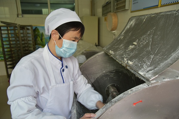 留礦職工每天三頓都要食堂供應(yīng),就餐人數(shù)從原來的日均600人次徒然增加到近1500人次。食堂每天要準(zhǔn)備1500多份各色花樣的面點(diǎn),時(shí)間緊、任務(wù)重。為保證職工的飲食供應(yīng),李曉梅同食堂職工加班加點(diǎn),凌晨兩三點(diǎn)就起床馬不停蹄地連軸轉(zhuǎn)到下午五六點(diǎn)鐘。面案是個(gè)體力活,從凌晨兩點(diǎn)發(fā)面、揉面、售飯,每天至少要站八九個(gè)小時(shí),一天下來累的腰酸腿疼、胳膊都抬不起來,晚上睡覺的時(shí)候,舍友震驚得發(fā)現(xiàn)她的后背和胳膊全部貼滿了膏藥,就是這貼滿膏藥的后背與胳膊卻扛起了全礦職工的生活保障。