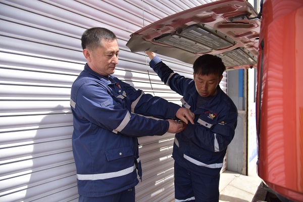 孫治慶是車隊(duì)公認(rèn)的“老師傅”。“首先要仔細(xì)檢查一下儀表、燈光、雨刮、車門、玻璃等有沒有故障,再看看轉(zhuǎn)向系統(tǒng)、剎車系統(tǒng)等設(shè)施是否靈敏有效……”4月21日清晨,春暖乍寒,在金翅嶺金礦停車場(chǎng),師傅孫治慶正專心地指導(dǎo)著徒弟進(jìn)行出車前的車輛“十檢”。