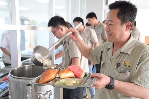 強化高溫天氣防范。炎炎酷暑,天氣持續高溫悶熱,企業嚴格把好夏季食品入口關。針對夏季高溫、細菌滋生迅速等問題,通過規范食材及原材料采購途徑、每日定時消殺、嚴格落實從業人員晨檢制度、操作間透明化管理等方式,讓干部職工吃得舒心、吃得放心。同時,加強對宿舍、廁所等區域清潔、消毒、滅蠅工作,防止病菌傳播情況發生,守護職工健康。該礦工會還積極開展“夏送清涼”活動,例如為一線職工熬制綠豆湯、為全體職工發放防暑茶和藿香正氣水、為食堂就餐人員開放空調、提供免費西瓜等等,全力做好防暑降溫工作。