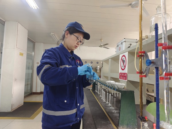 工作上,她勤勤懇懇、任勞任怨,每天做著重復(fù)而枯燥的試驗(yàn)工作,看似平淡無奇,實(shí)則至關(guān)重要。雖然沒有直接參與車間生產(chǎn),但她明白自己肩上的擔(dān)子和責(zé)任,試驗(yàn)工作決定著原料是否符合要求、決定了企業(yè)的利潤(rùn)也關(guān)乎企業(yè)職工的利益,她是車間的眼睛,在各車間、各環(huán)節(jié)之間起著橋梁和紐帶的作用。