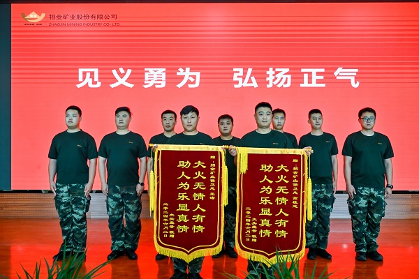 “非常感謝招金的救火英雄,否則后果不堪設(shè)想!”近日,一面寫(xiě)著“大火無(wú)情人有情、助人為樂(lè)顯真情”錦旗送到招金礦業(yè)保衛(wèi)處。原來(lái),這是附近的商戶專程送來(lái),為了感謝保衛(wèi)處隊(duì)員們?cè)谕话l(fā)火情中的援救和幫助。