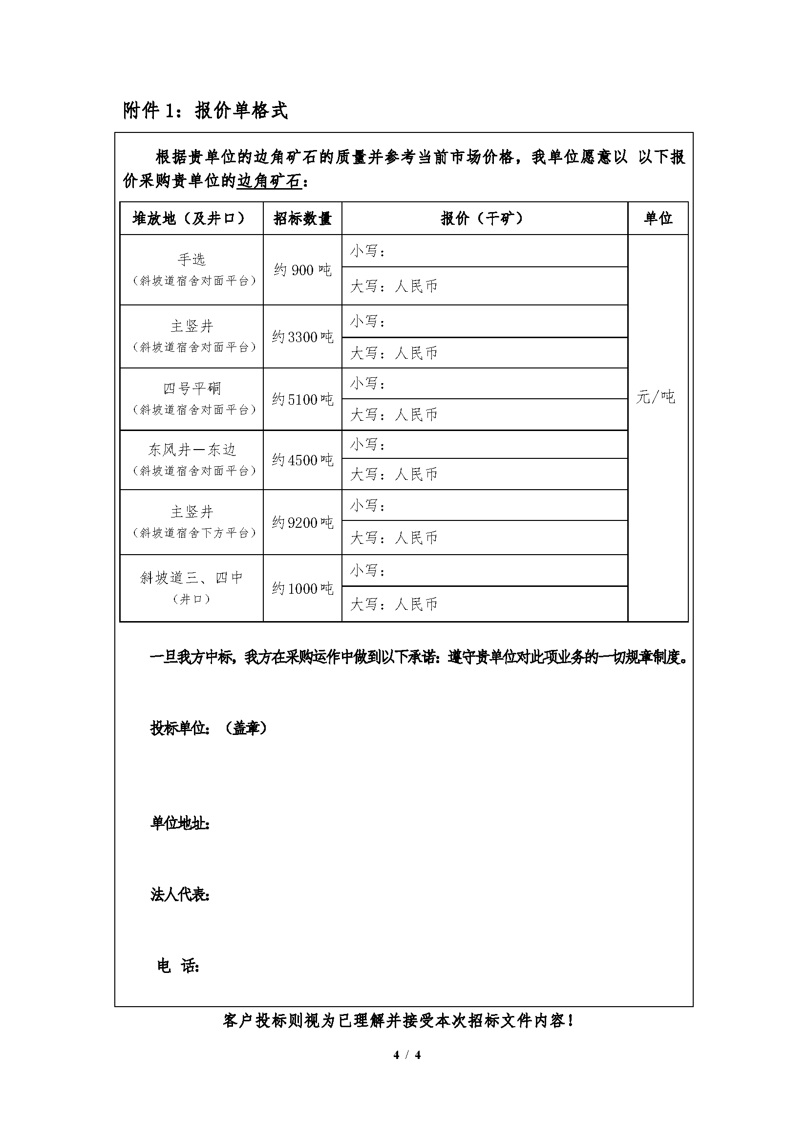 4.如無異議,請投標人將此招標文件和報價單加蓋企業公章(或按捺手印)原件掃描后發送至指定投標郵箱;報價單所需填寫的數據原則上要求電子版,若手寫須大小寫注明,如有涂改、不清晰或大小寫不一致的視為廢標。其他未盡事宜,以中標后簽訂的合同條款約定為準。