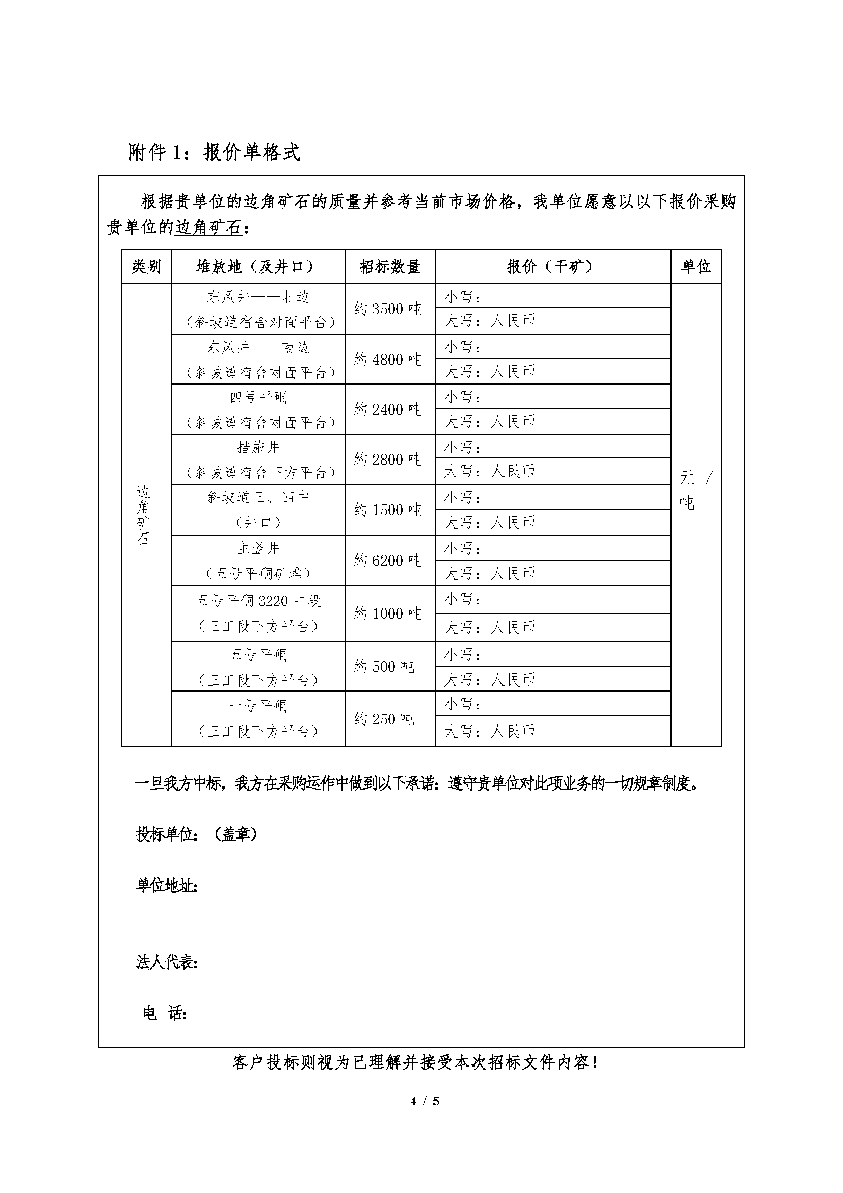 邊角礦石及產品招標文件