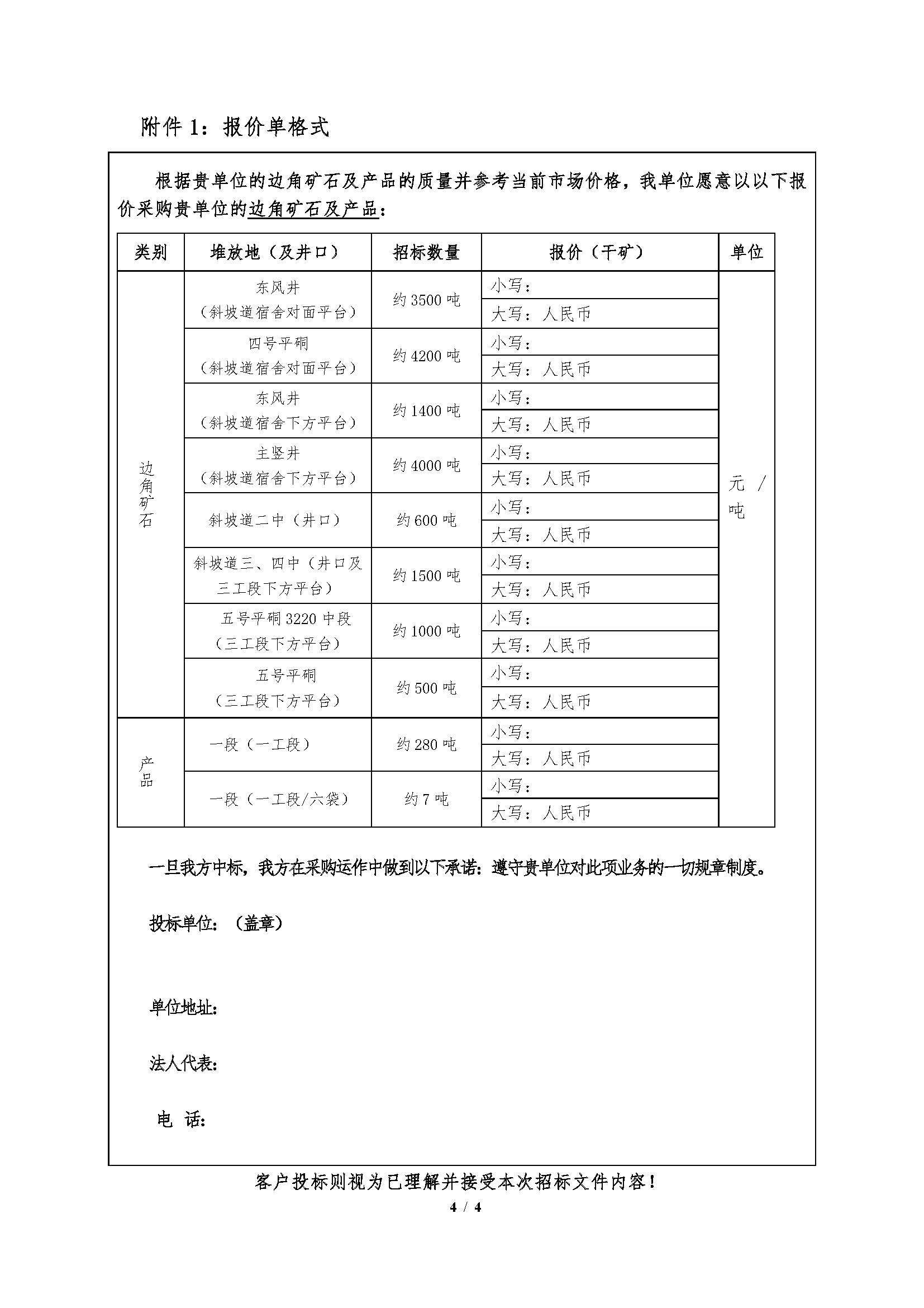 3.招標結束之后中標人必須在 3 個工作日內預付貨款進行拉運。中標人需在中標后 3 日內進行合同簽訂(簽署合同的同時,投標保證金轉為同等金額的履約保證金),并根據合同約定事項,進行款項預付及貨物裝運。如中標人在合同規定時間內預付貨款不能及時到位,我公司將取消其本次中標資格并扣除全額投標保證金;若中標人未聽從我公司安排在規定時間內裝完貨物,我公司將有權終止合同并扣除中標人全額履約保證金(本次招標產品于2024年1月20日前拉運完畢)。為保障中標人的權益,我公司承諾,在此次招標產品數量內,我公司將不會銷售給除中標人以外的任何客戶。如本次招標有違反上述約定的行為,請貴公司撥打舉報電話進行投訴,舉報電話:0535-8262976。