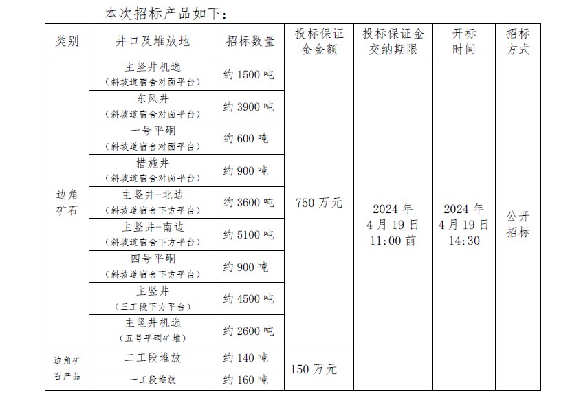 邊角礦石及產(chǎn)品招標(biāo)文件