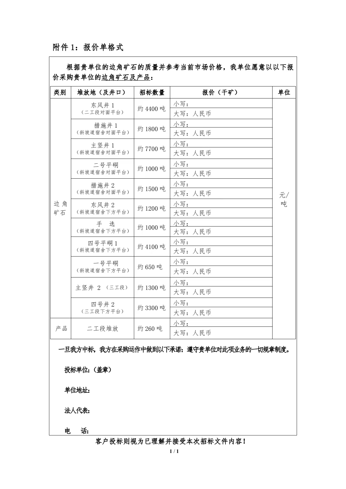 注:本次招標產品數量為預估數,投標按干礦報價,中標結算濕礦以實際過磅數為準,水分按2%扣除計算干礦;邊角礦石產品水分由中標人及我公司相關科室、車間人員現場取樣、我公司化驗的水分數據為準。如中標人需要,我公司開具甘肅省增值稅普通發票(黃金)。